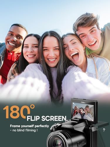 5K Professional Cameras for Photography 64MP – 16X Zoom, WiFi, 3” 180° Flip Screen, Autofocus & Anti-Shake, 32G Card, 2 Batteries, Digital Camera for Vlogging YouTube Live Streaming NBDDIGITAL (Black)